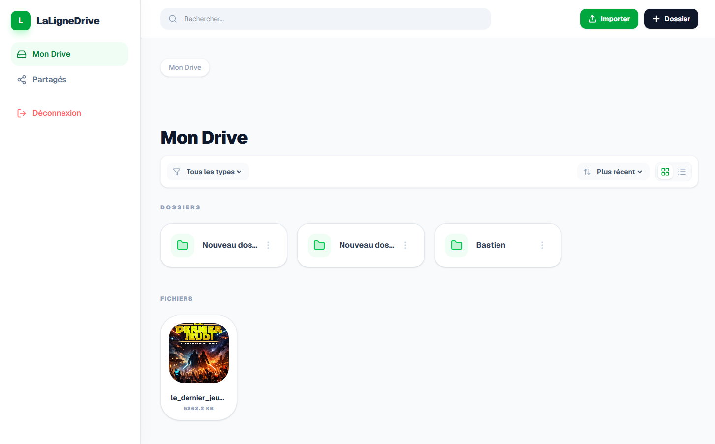 J’ai conçu et développé LaLigneDrive, une solution de stockage cloud privée auto-hébergée, dans le cadre de mon alternance au sein de l'agence La Ligne Web. Mon rôle a été de concevoir l'application de A à Z (Full-Stack) et d’intégrer une interface moderne et responsive, permettant une gestion sécurisée et intuitive des fichiers et répertoires. J’ai également travaillé sur l’optimisation de l’expérience utilisateur avec une navigation fluide, l'implémentation du glisser-déposer (Drag & Drop).